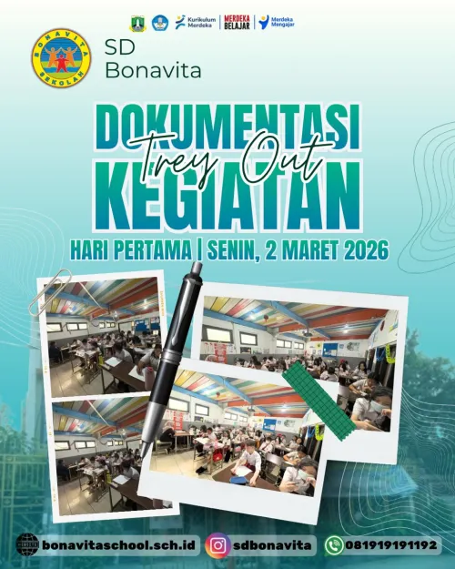 Senin, 2 Maret 2026 — Hari pertama Try Out di SD Bonavita dimulai dengan penuh semangat! 💪📖Langkah kecil hari ini adalah bagian dari mimpi besar esok hari. Tetap fokus, percaya diri, dan berikan yang terbaik!